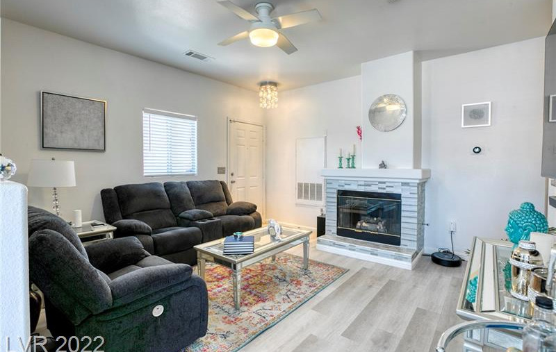 JUST IN TIME FOR THE NEW YEAR!! Welcome home to a modern updated condo in the highly sought after gated community, Red Bluffs @ the Crossings. This fabulous community is a quiet retreat in the heart of North Summerlin w/ everything you could desire in close proximity. Conveniently located to City National Arena, Las Vegas Ballpark, & Downtown Summerlin, which offers some of the finest restaurants, shopping, & night life in all of Las Vegas. Condo features: 2 beds w/ 2 full baths, 1 car detached garage, NEW HVAC system & Water Heater in 2021, NEW Refrigerator, NEW Washer and Dryer, NEW laminate flooring throughout, w/ high end porcelain tile in the kitchen, an elegant fireplace compliments the living room, & through the dining room doors, a balcony waits for you to enjoy your morning beverage. Turnkey and ready, this home has everything to offer along with a fabulous location in the community close to the pool & fitness/rec center. THIS IS THE ONE YOU HAVE BEEN WAITING FOR!!